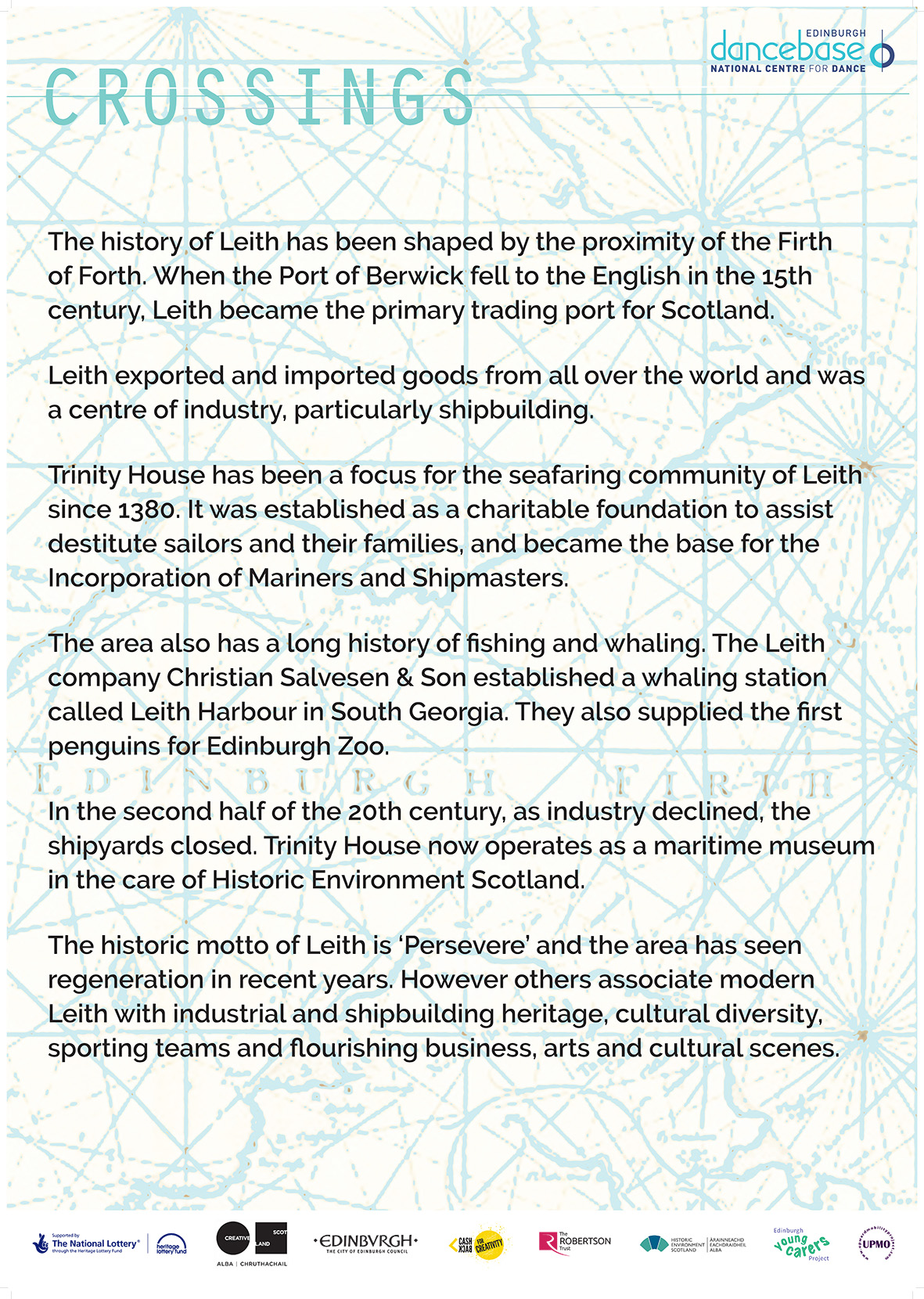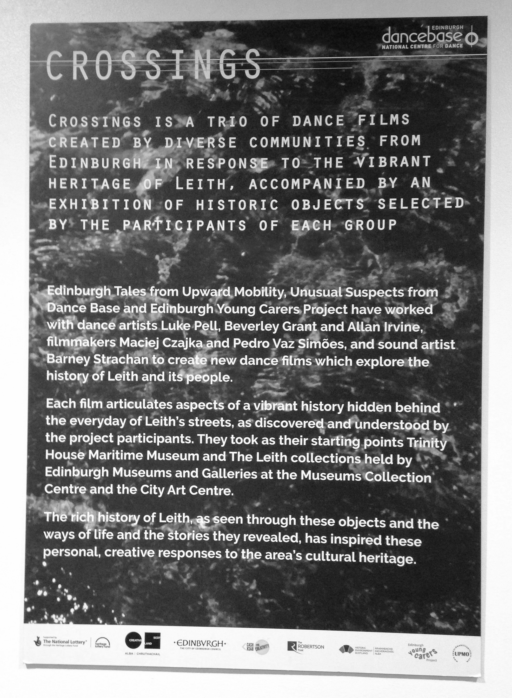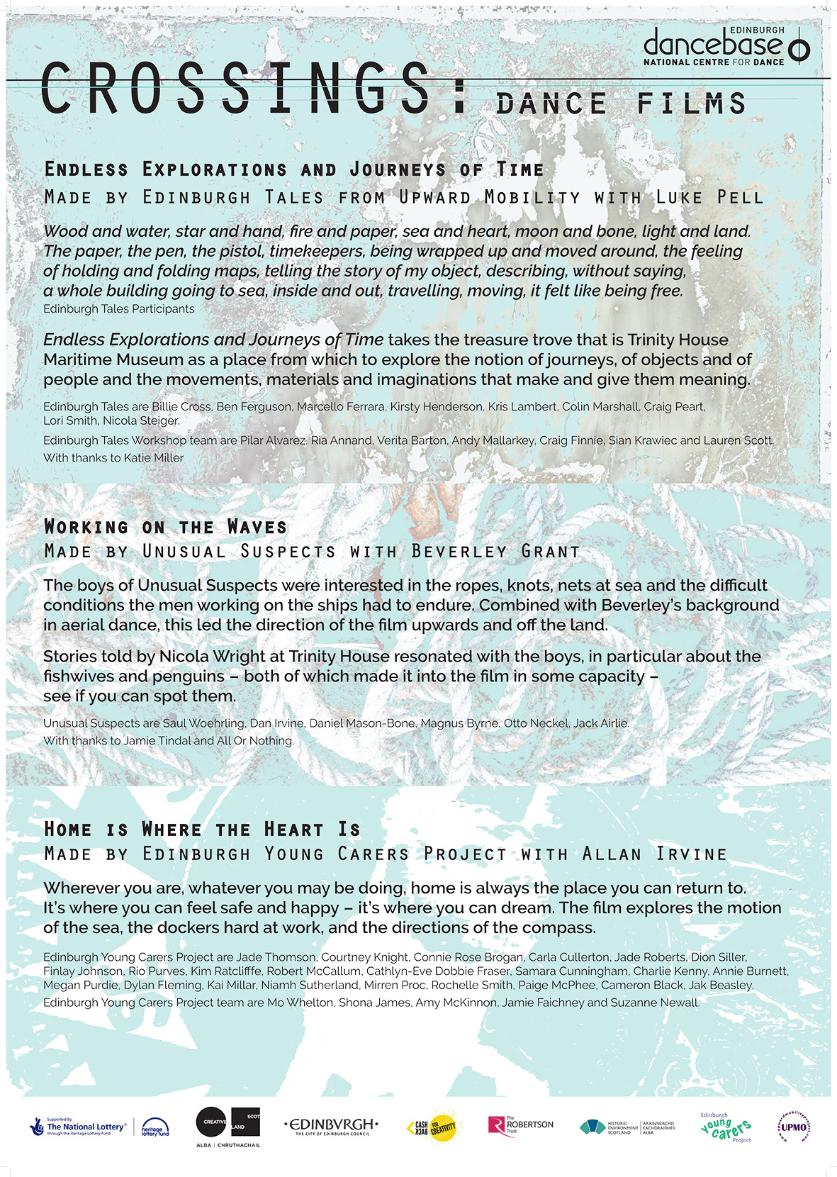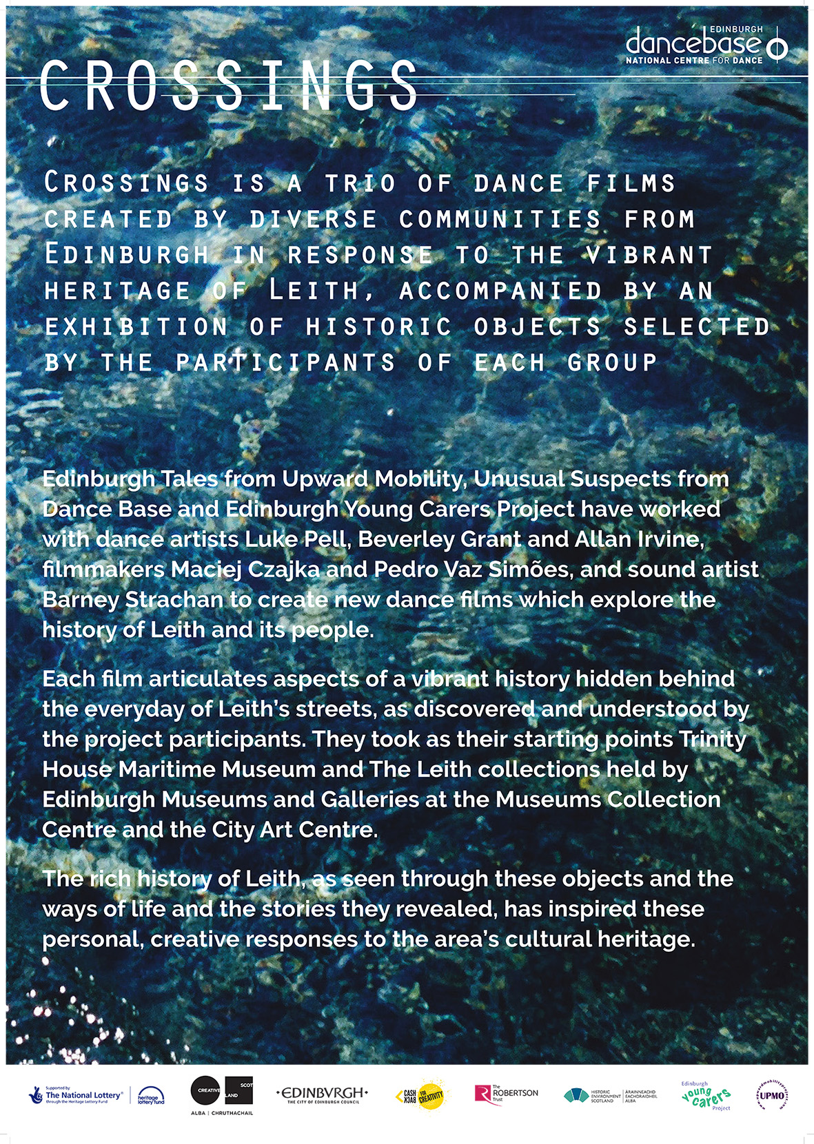 A selection of print to tell the story of an exhibition of dance films and objects, for a Dance Base community project. Print produced included display boards, programme, exhibition cards and labels and a teaching pack.