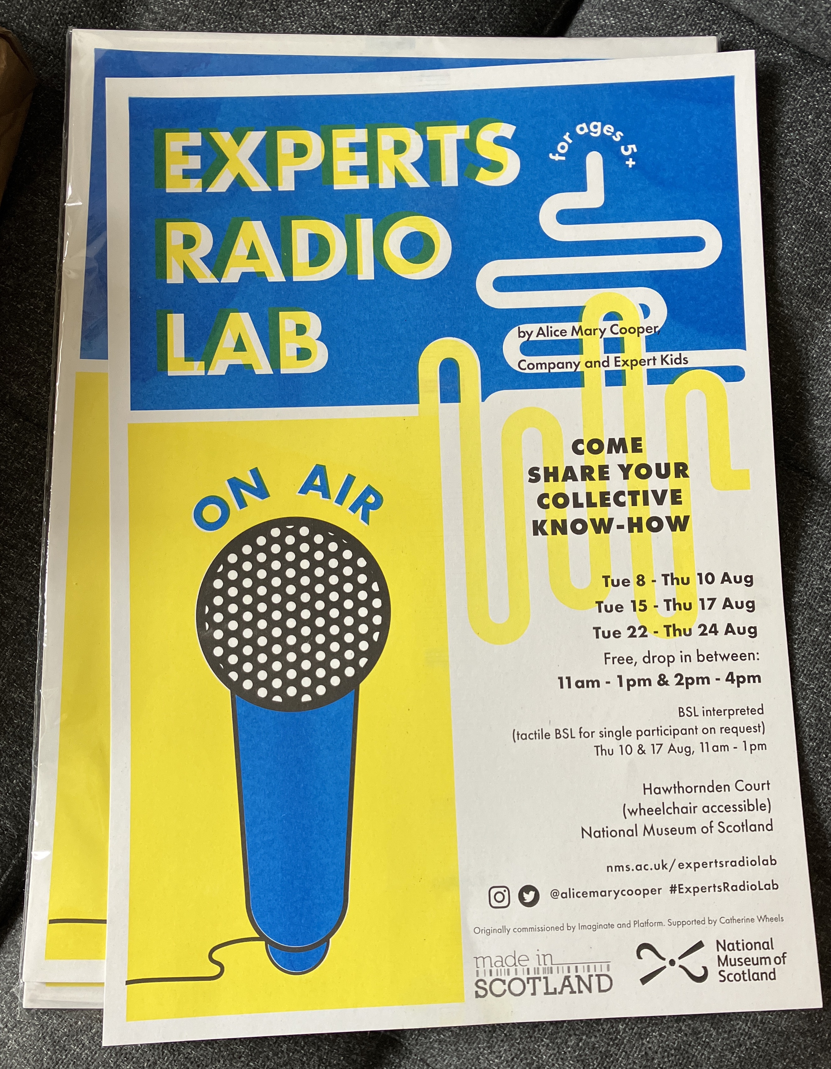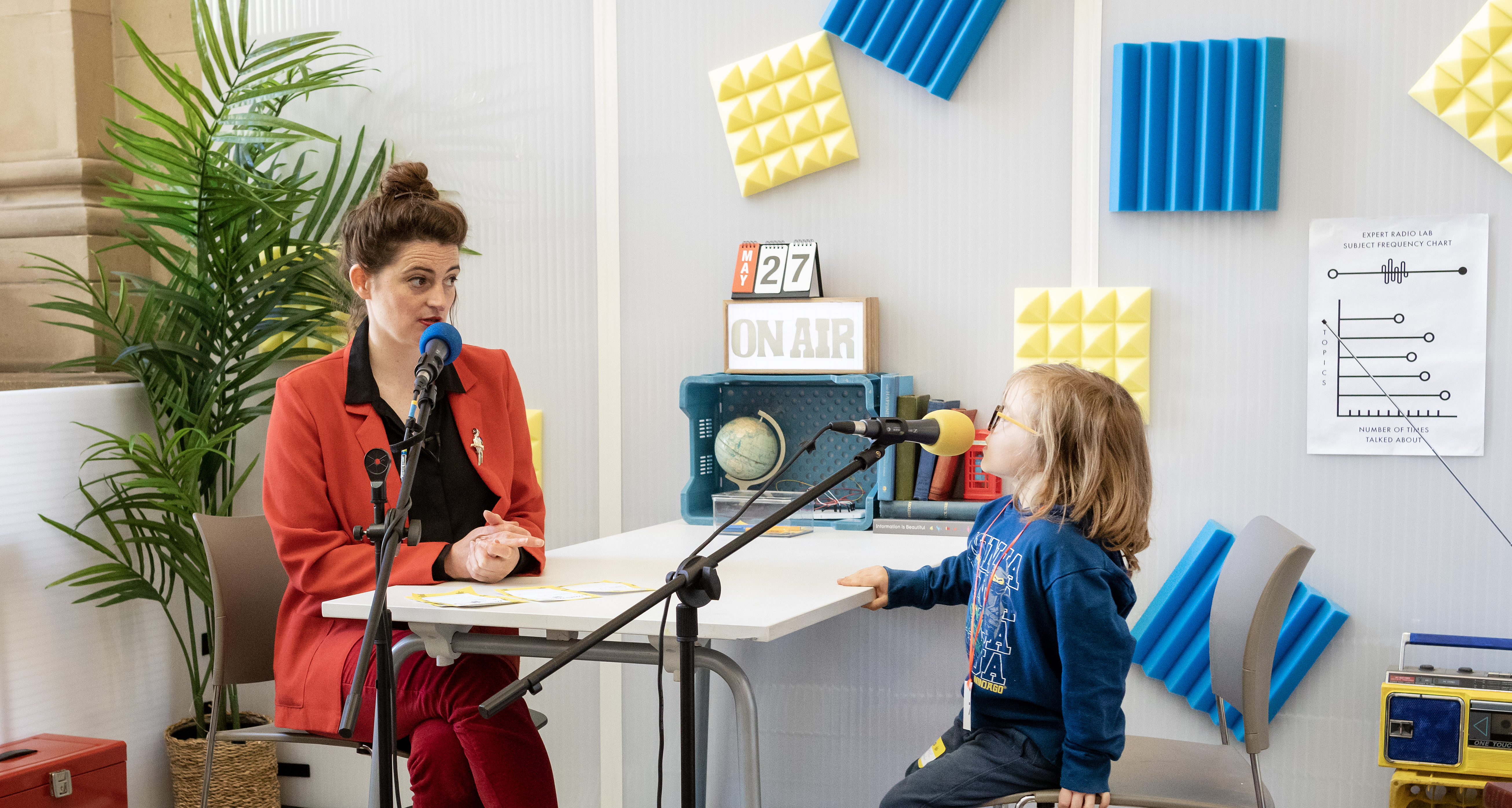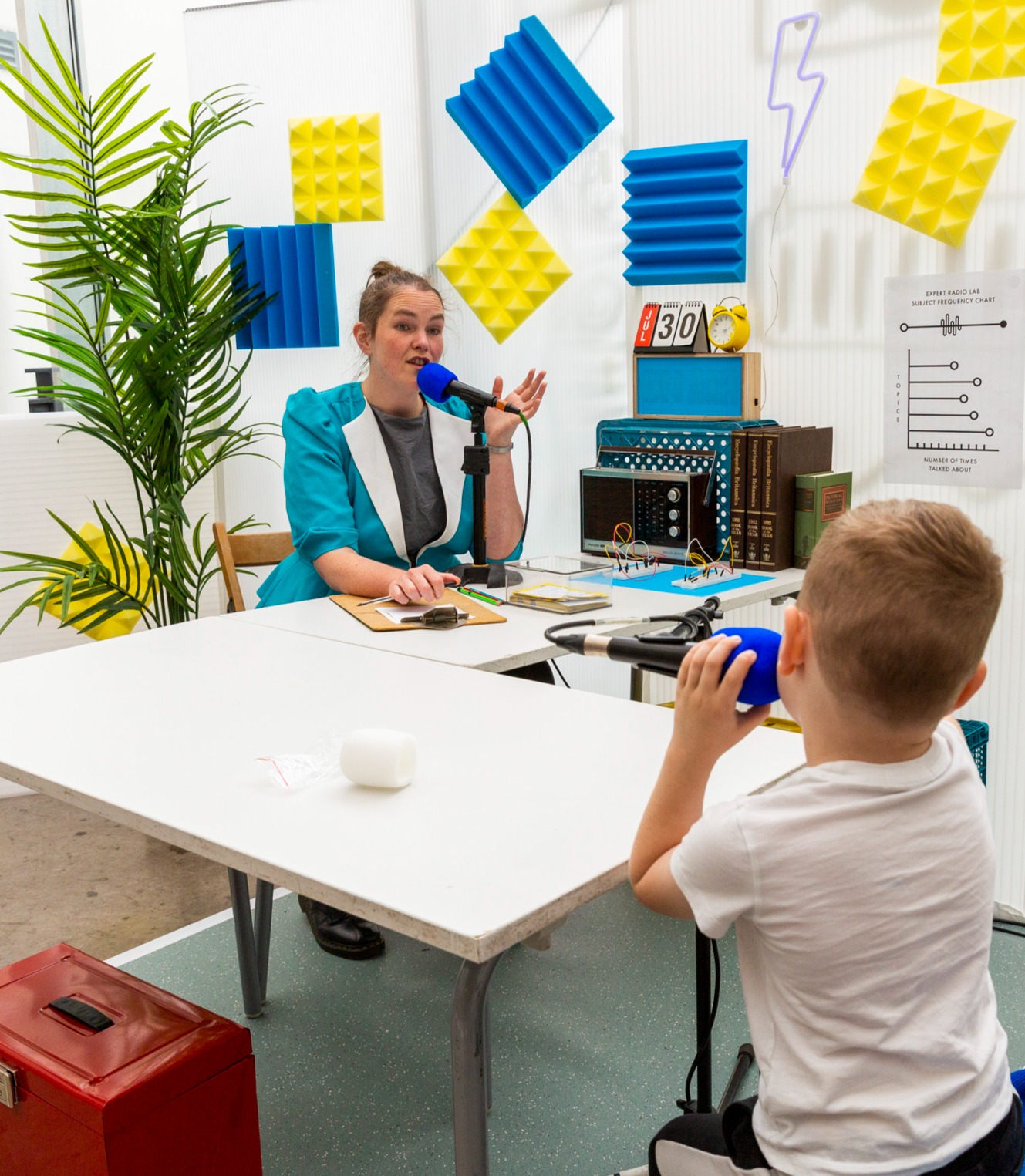 Experts Radio Lab is a live radio show where young people are interviewed as the expert in their chosen subject, from gymnastics to unicorn fossils and diabetes. The interviews are shared live to an audience of fellow interviewees, their families and curious onlookers in a specially designed listening area. The project also required a number of printed items for publicity and information.