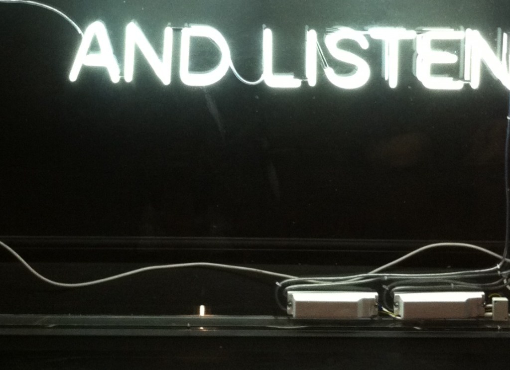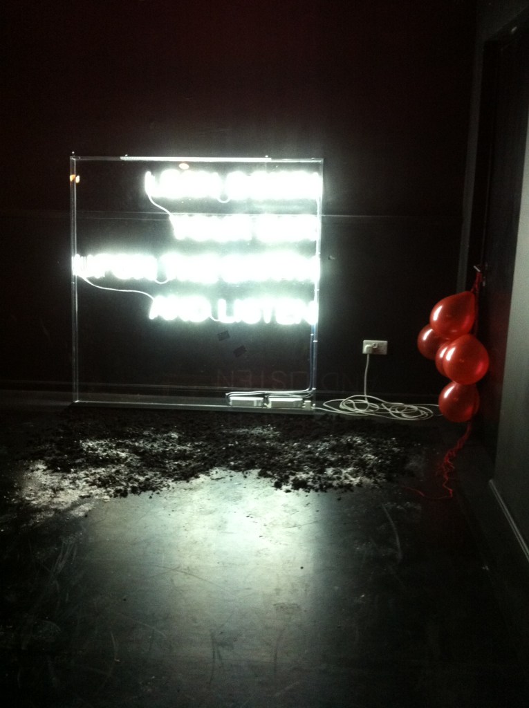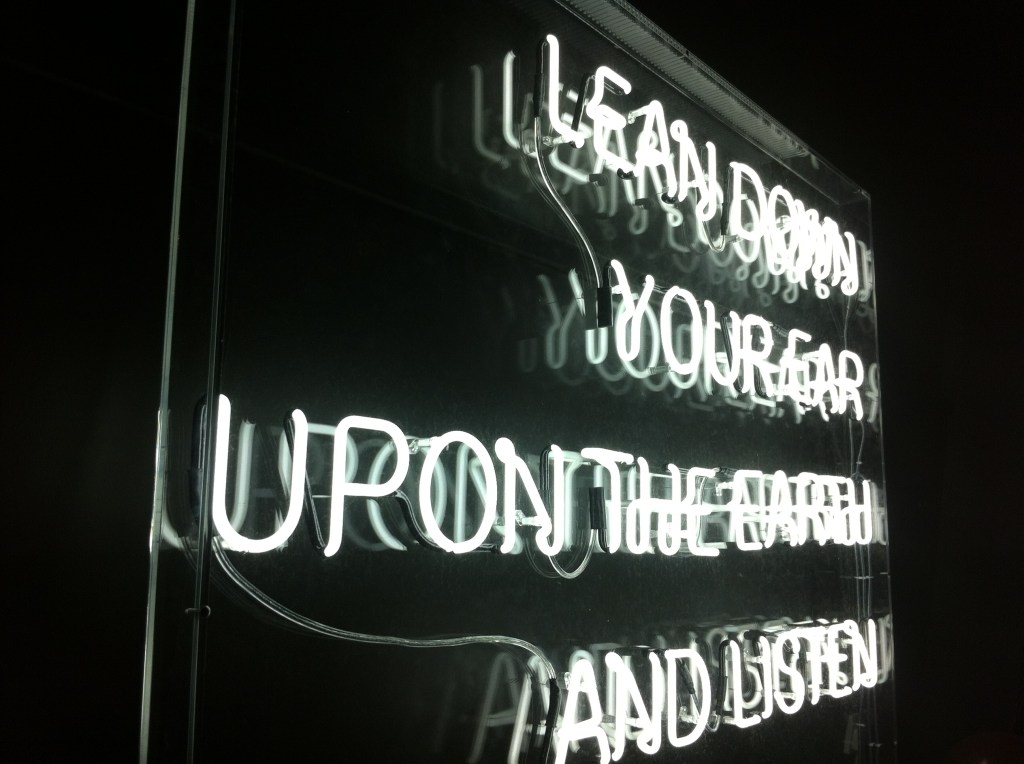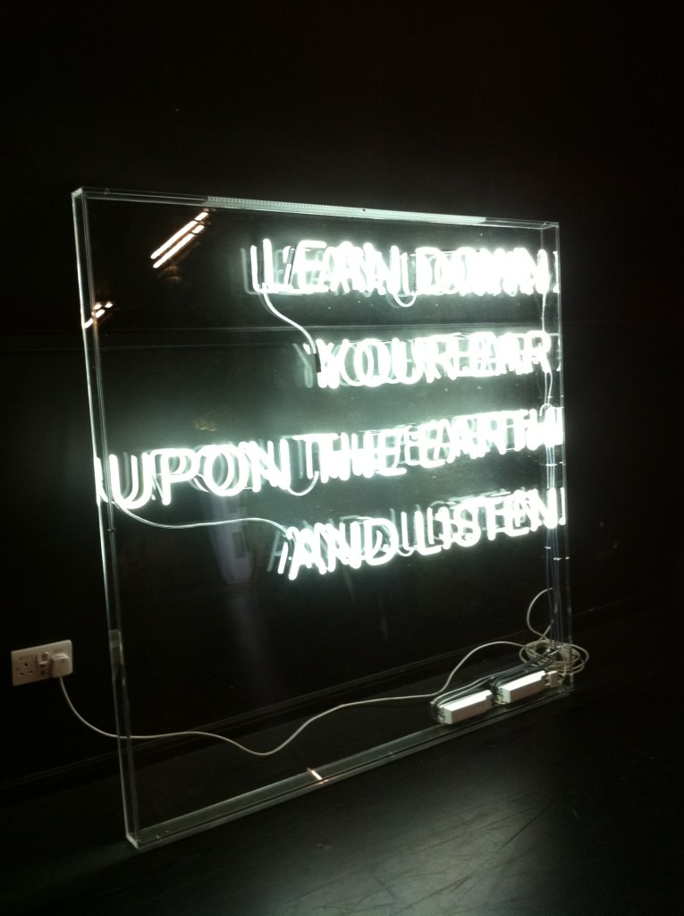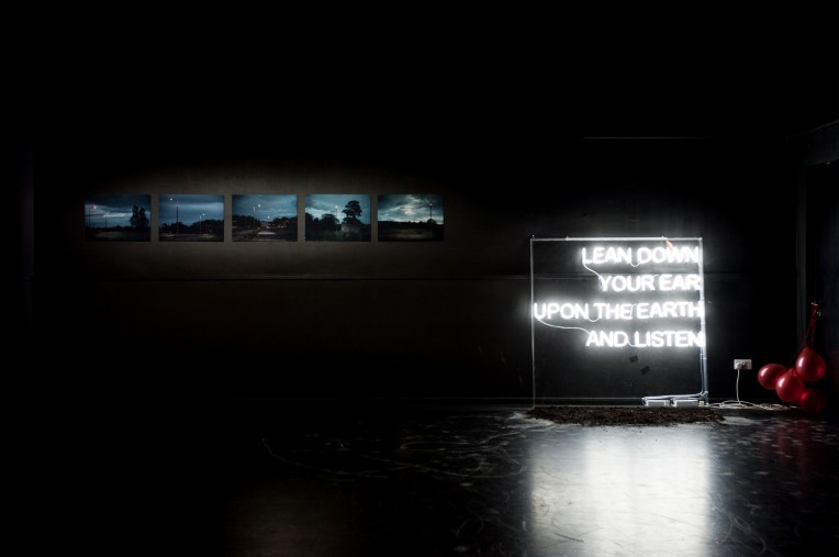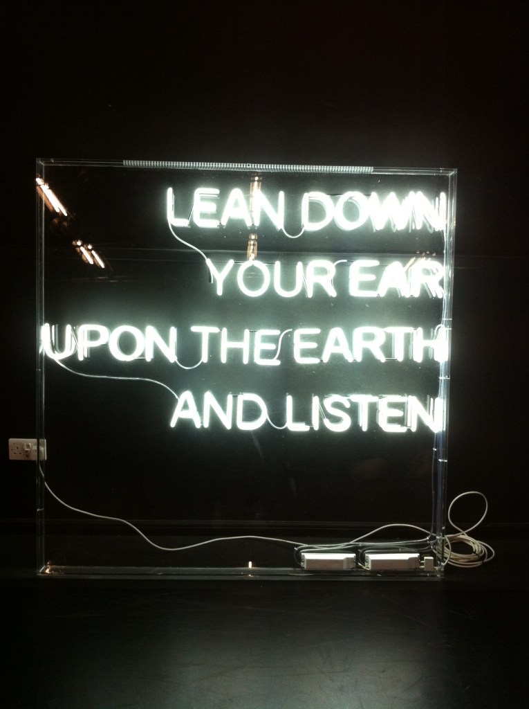Visual art commission as part of a collaborative multi-discipline project and exhibition of work made in response to time spent in the areas of Niddrie and Craigmillar. The piece consisted of a large neon sign which invites the audience to listen to recorded local stories broadcast from the earth below. The project was devised and created by the young people of Craigmillar and Niddrie in collaboration with Lou Brodie, funded by The Heritage Lottery and partnered by Historic Scotland, Lyra Theatre and Imaginate.