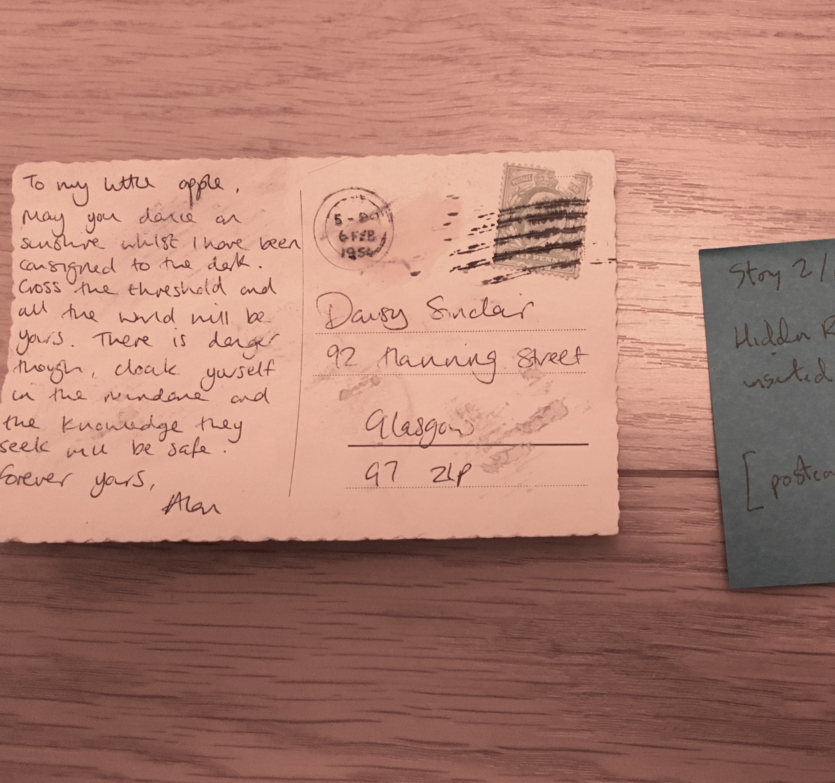 Designer for Visible Fictions‘ production of The Hidden, a site-specific, audience-led theatrical experience performed at Paisley Library in November 2017, and remounted as part of the Edinburgh International Book Festival 2018 at Edinburgh’s Central Library.