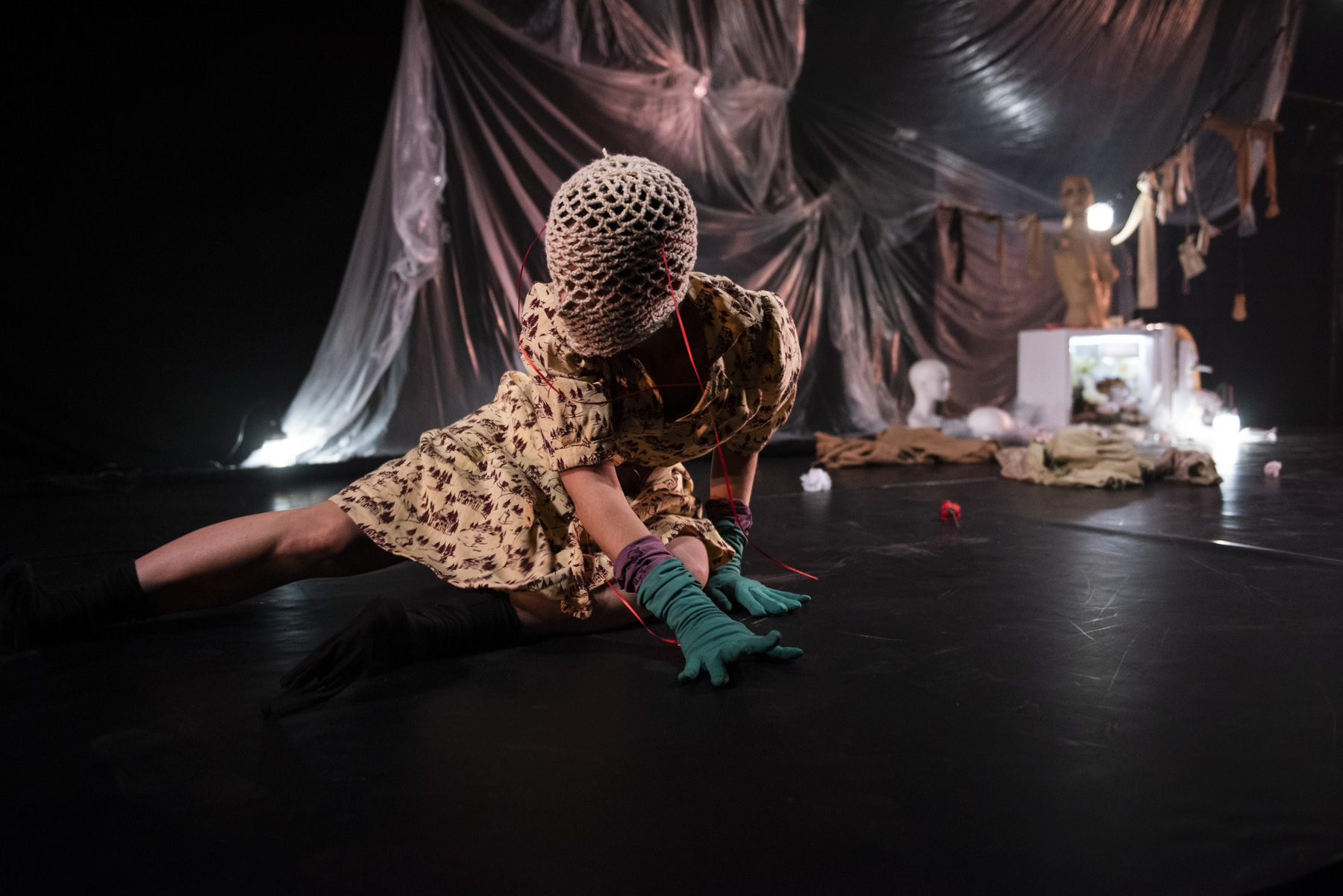 Scenography for junk ensemble‘s The Veiled Ones – a multi-space promenade dance/theatre production – at the Samuel Beckett Theatre as part of the 2021 Dublin Fringe Festival, and the 2021 Baboro International Arts Festival for Children, Galway.